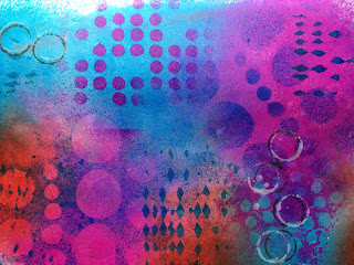 I went to a class taught by Dyan Reaveley (creator of the Dylusions range) yesterday, it was fab! We were each given an art journal and spent the morning learning how to make backgrounds with the dylusions sprays, and how to add depth with stencils. I was inspired by Dyan's samples to make this tag.....